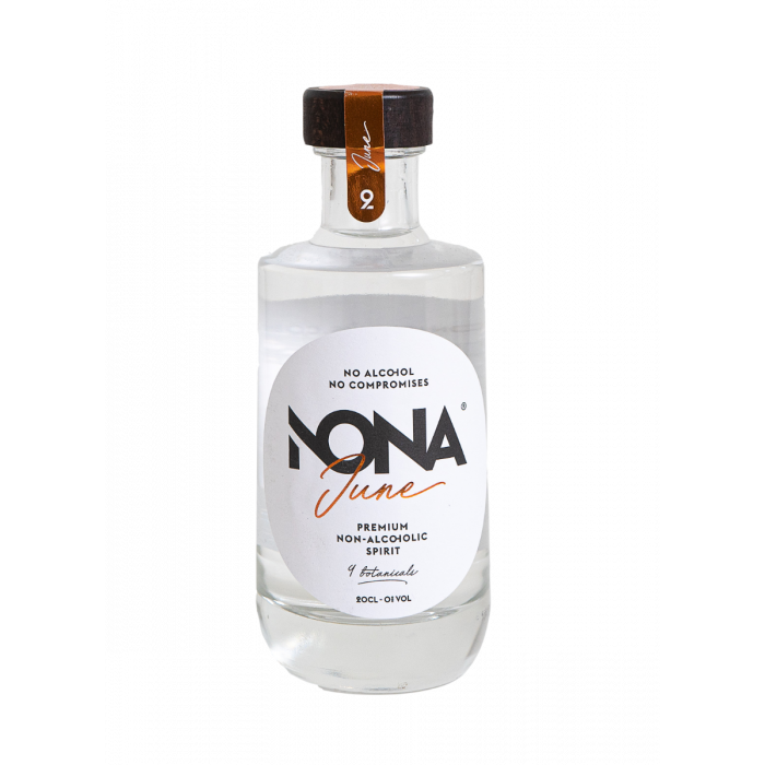 NONA June is de eerste Belgische alcoholvrije premium spirit die doet denken aan gin. Het is een verfrissende en evenwichtige mix van 9 plantaardige ingrediënten op basis van jeneverbessen en verse citrusvruchten, met een kruidige toets van basilicum.